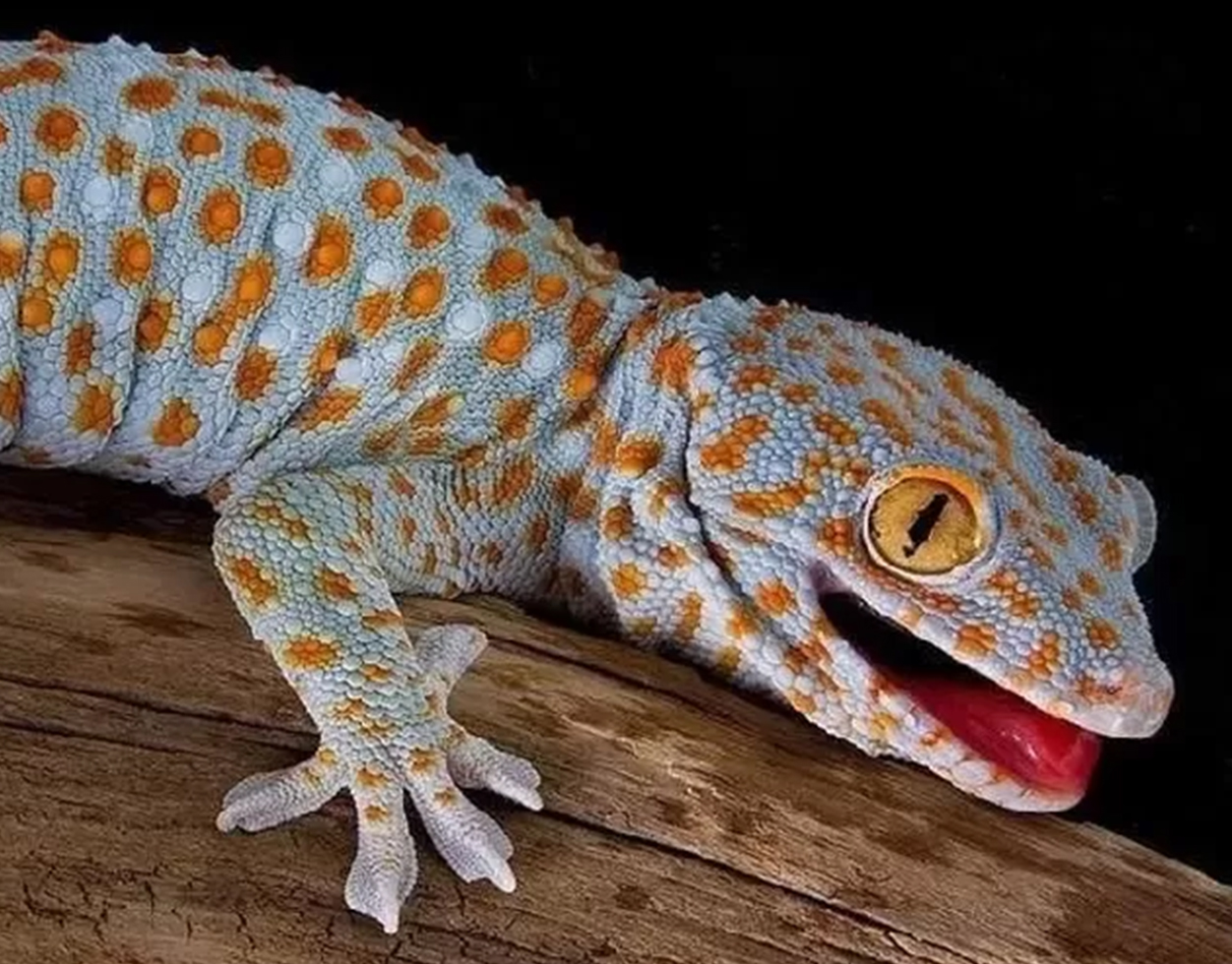 The most common gecko found in Indonesia is the Gekko Gecko. They are nocturnal and often seen at night. This type of gecko is found mainly in Sumatra, Java, Bali, and Lombok. Its native habitat is rainforest, where it lives on trees and cliffs, and it frequently adapts to rural human habitations, roaming walls and ceilings at night in search of insect prey. Their total length (including tail) of 25 – 30 cm (10 –12 inches) on average, but some grow as large as 40 cm (16 inches) long. The skin is soft to the touch and is generally blue-gray with red or orange spots and speckles, but the animal can change the color of its skin to blend into the environment. The animal is derived from the gentle and harmless nature of geckos, which are known for their tame and non-threatening behavior toward humans. The Gekko Gecko feeds on insects and small vertebrates. In captivity, they usually feed on springtails, mealworms, cockroaches, crickets, grasshoppers, pink mice, and locusts. The male's mating call, a loud croak, is variously described as sounding like token, gekk-gekk, tuck-too, túc-key, tou-kay or tokay. A mythical belief among local communities that hearing the sound of a gecko brings good fortune or luck. According to popular belief, encountering the chirping or vocalization of a gecko is considered an auspicious sign and an omen of upcoming positive events or favorable outcomes.