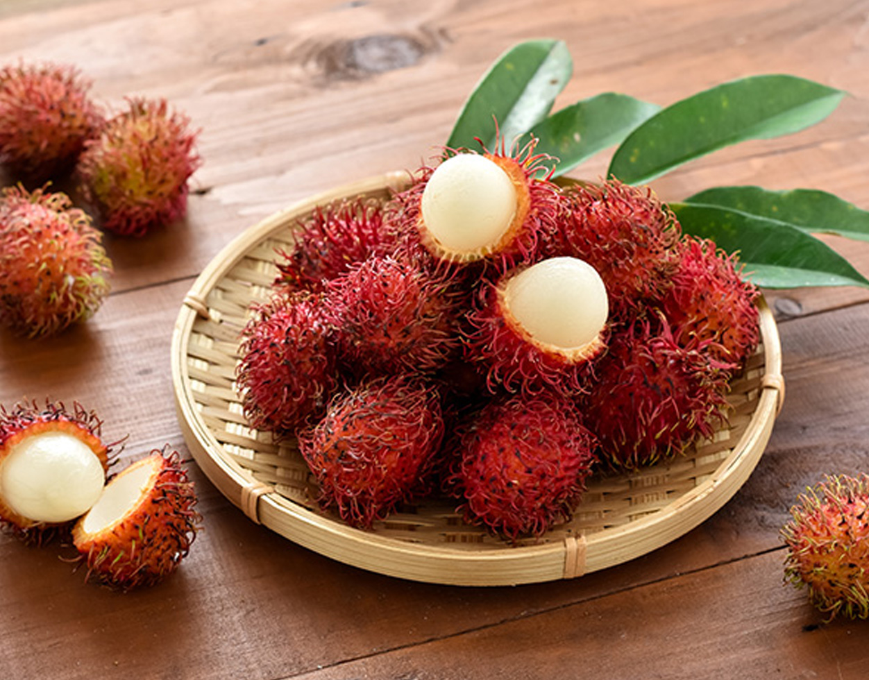 Rambutan (Nephelium lappaceum) is a medium-sized tropical tree in the family Sapindaceae. The name also refers to the edible fruit produced by this tree. The rambutan is native to Southeast Asia. It is closely related